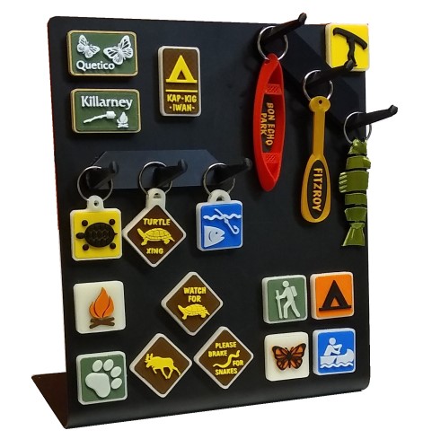 are available on Amazon, If you wish to also use it to display our keychains, please request our magnetic peg racks.